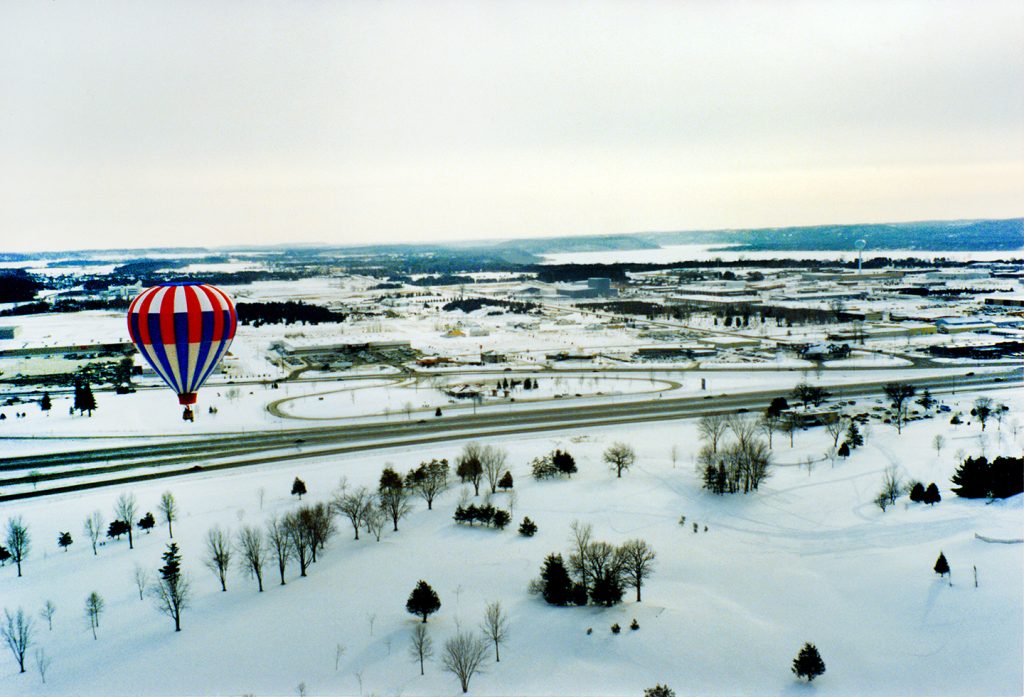 1995 balloon flight over Hudson. You can see Walmart to the left of the balloon.